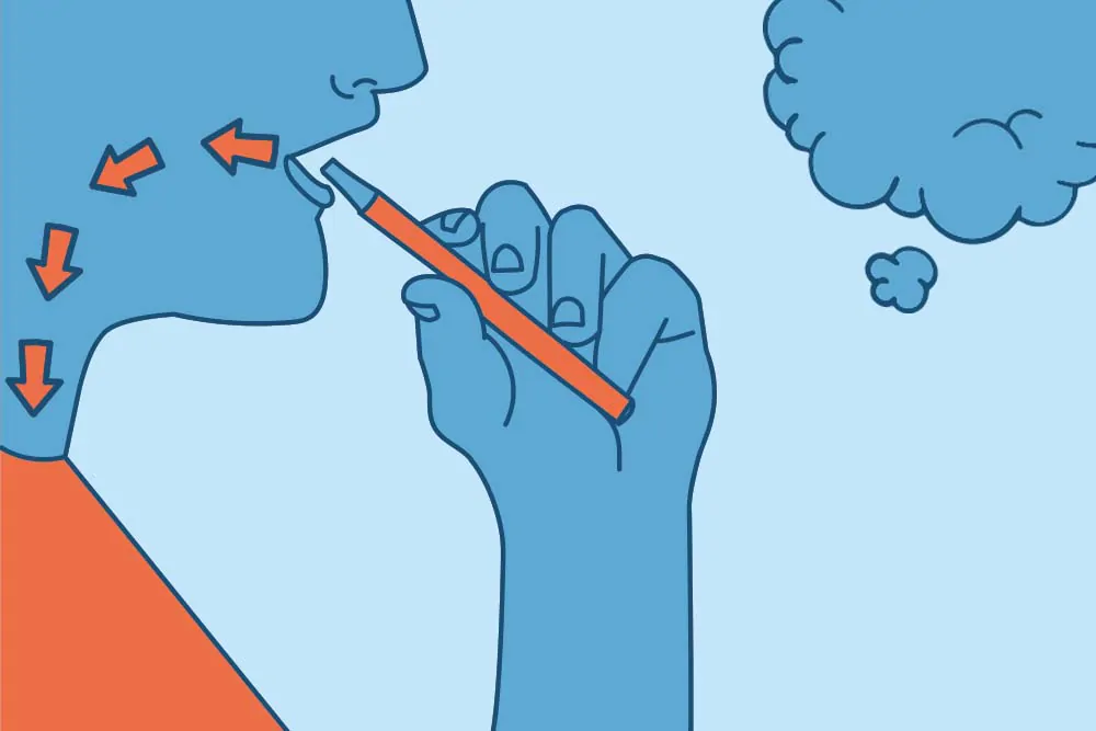 Ce type d'inhalation indique que le vapoteur aspire d'abord la vapeur en bouche, puis la fait ensuite passer vers le poumons, comme le font généralement les fumeurs.